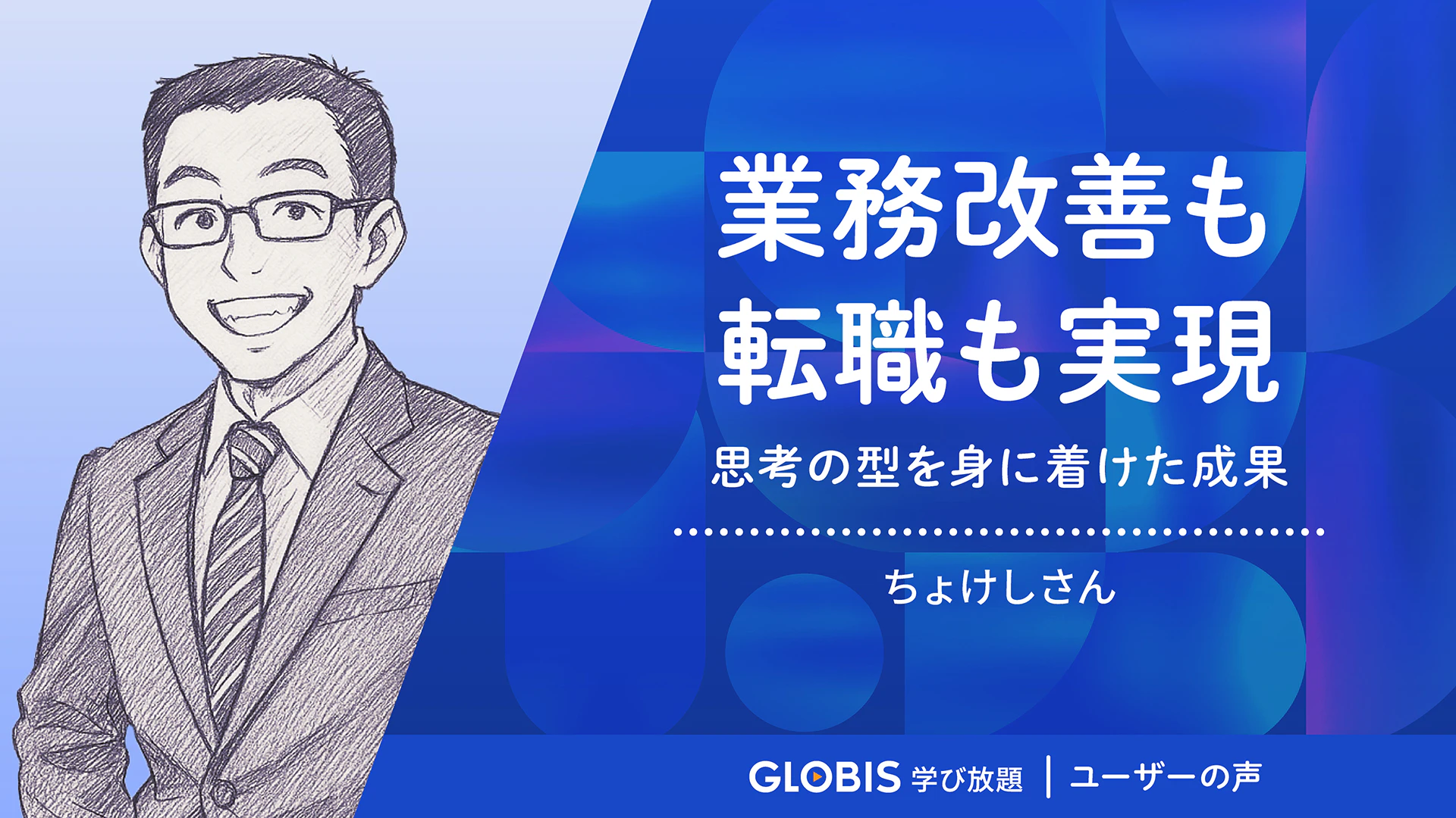 GLOBIS学び放題の学びの楽しさを広めているちょけしさんは、製造業での経験を活かしてIT企業に転職。現在は製造業向けのITコンサルティングに従事しながら、GLOBIS学び放題を通じて学びを深めています。