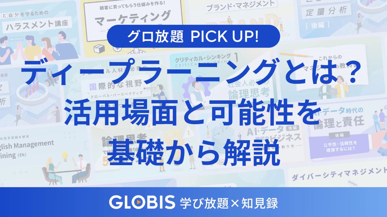 ※本記事は、GLOBIS学び放題の学習コース、「ディープラーニング ~機械学習がもたらすビジネスの可能性~」の内容をもとにしています。実務で活用する方法など、より詳しくビジネスで活用されるテクノロジーについて知りたい方は、ぜひ動画をご覧ください。