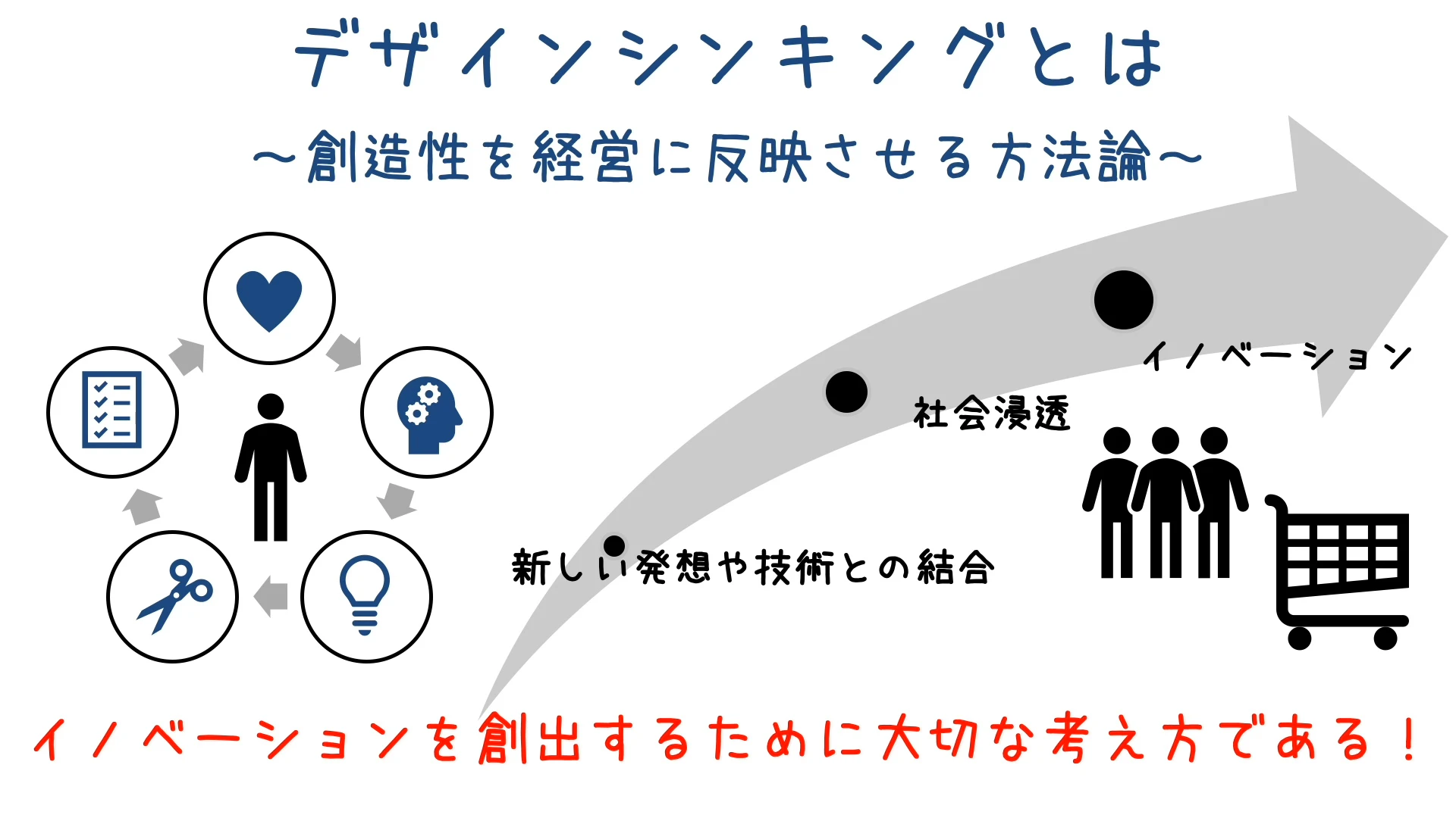 デザインシンキングは、「デザイナーのように考える」ことをビジネスに応用した方法論です。