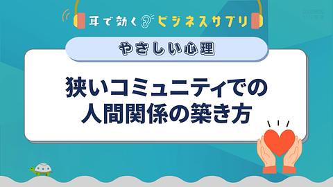 狭いコミュニティでの人間関係の築き方/耳で効く!ビジネスサプリ やさしい心理