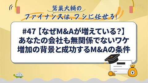 【なぜM&Aが増えている?】あなたの会社も無関係でないワケ 増加の背景と成功するM&Aの条件/鷲巣大輔の「ファイナンスは、ワシに任せろ!」